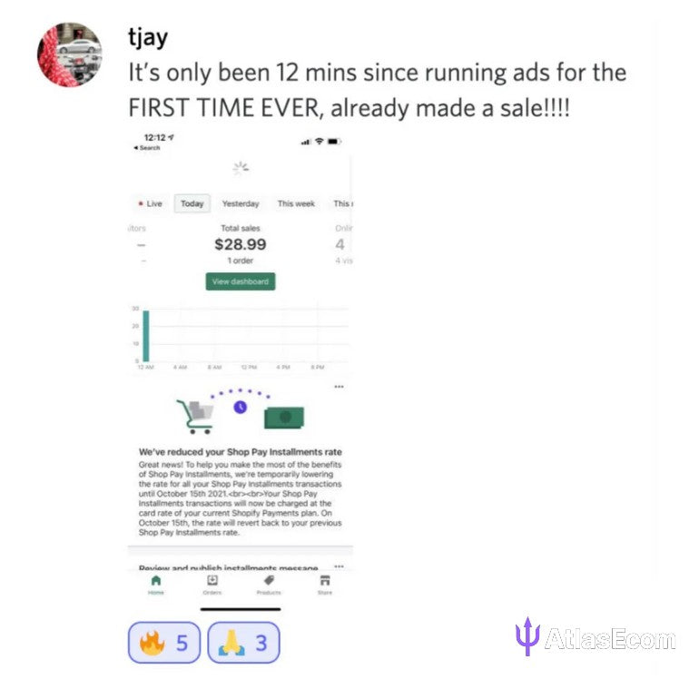 Just read Hormozi's book and Atlasecom really made an offer that's STUPID to say no to. For only $130 I got a store with 100 WINNING PRODUCTS and it was the best decision of my life. It's been 2 weeks and I've already made $3000 in sales! ❤️ Atlasecom fr Thank You 🙏 10K/MONTH NEXT!!